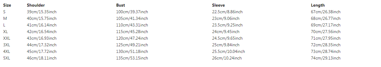 Size: S, M, L, XL, XXL, XXXL, XXXXL, 5XL