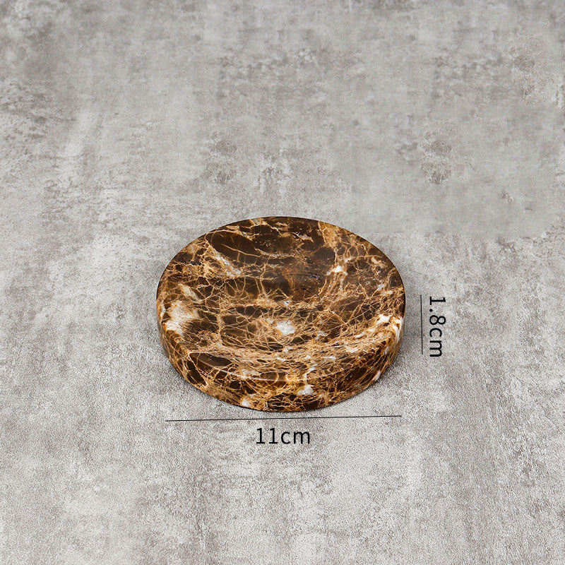 Color: The following colors are coffee lotion bottle (round), mouthwash cup, toothbrush holder, three-hole toothbrush holder, cotton swab box (square), cotton swab box (round), soap box (square), soap box (round), tray (Small), tray (long), right-angle tray, round tray, handle tray (round), handle tray (square), tissue box (long), tissue box (square), all products are made of natural marble