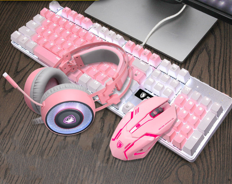 6 style: White powder white light (104-key green axis) + pink mouse + pink headphones