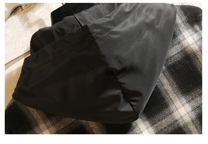 Men's Japanese Plus Size Casual Original Detachable Hooded Plaid Shirt