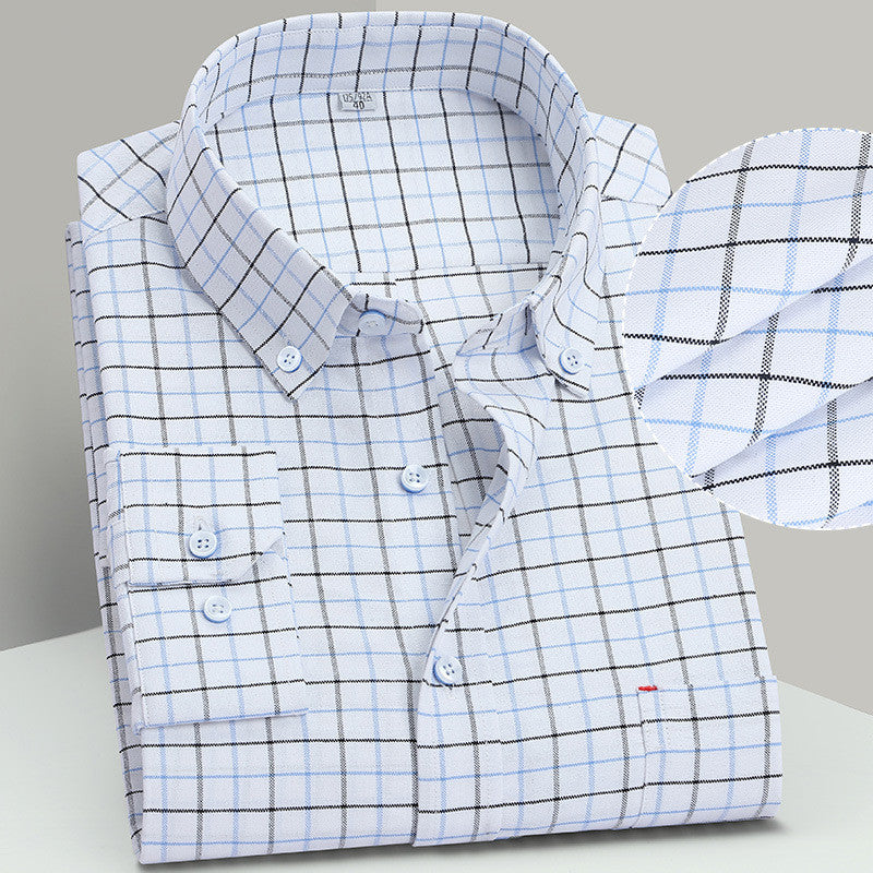 Men'S Plus Size Cotton Oxford Plaid Shirt