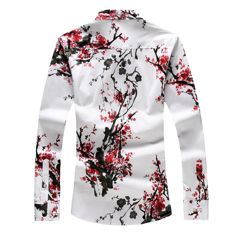 Men's Plus Size Satin Flower Long-sleeved Slim Fit Shirt