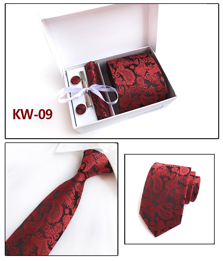 Tie, square towel, cufflinks, tie clip, white gift box, gift bag*1SET