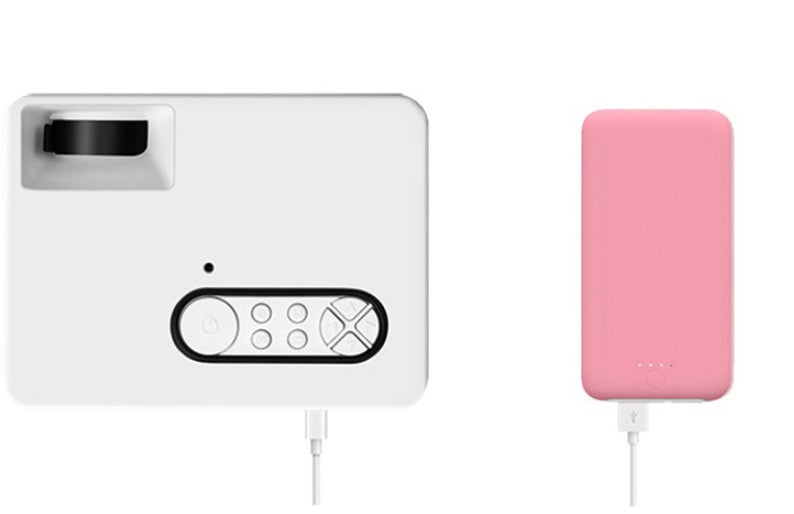 The projector does not have its own battery and requires a 5V/2A power supply, such as a wall charger or a mobile power supply. It is very suitable for traveling, hiking, and camping without electricity or a TV. It is also very popular with children.