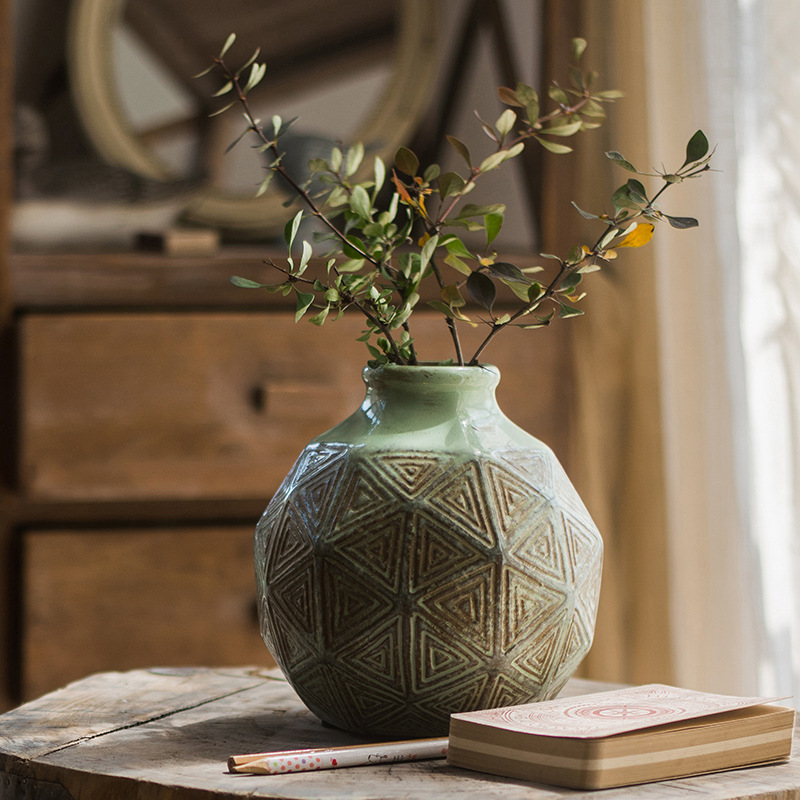 Multi-surface Pattern A Narrow Mouthed Bottle Vintage Ceramic Pot Vase