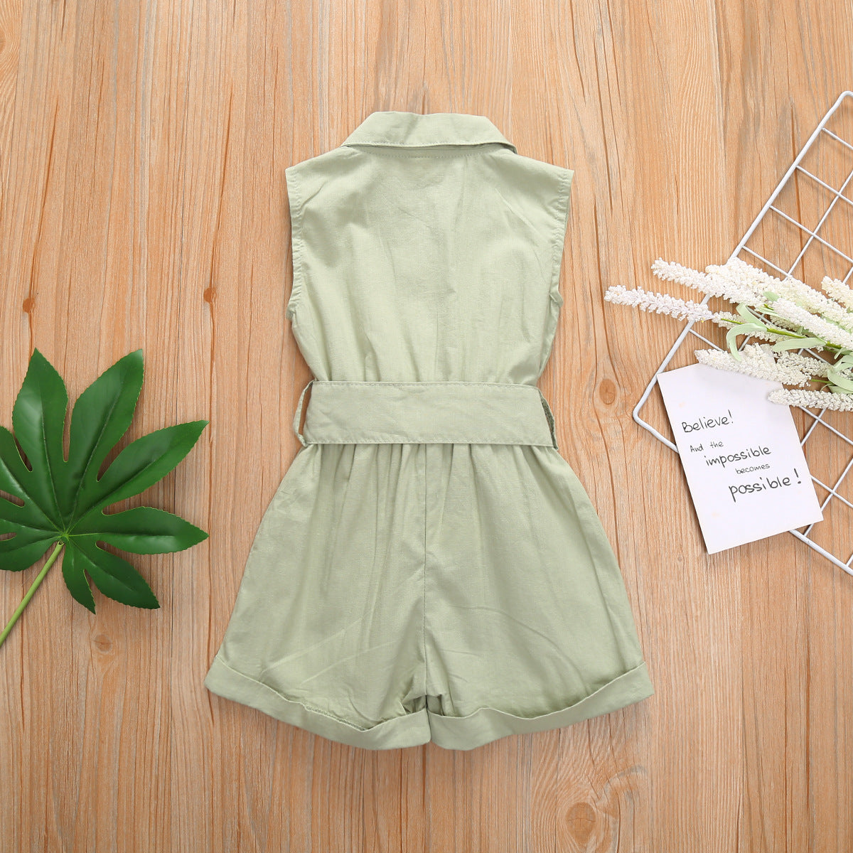 Multicolor Girls' Solid Lapel Sleeveless Single-breasted One-piece Shorts
