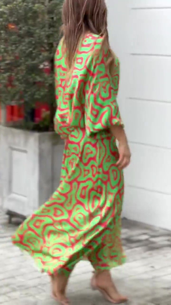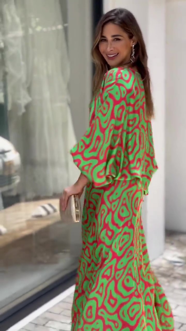 New Loose Plus Size Printed Long Sleeve Shirt High Waist Skirt Suit