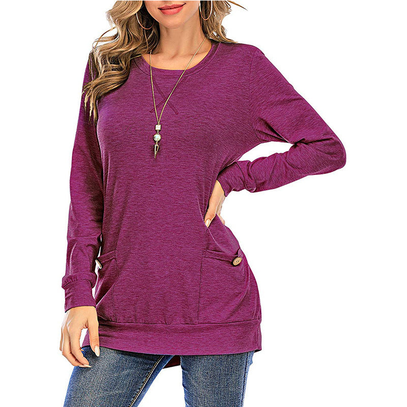 New Product Crossed Pockets Round Neck Long-sleeved T-shirt Women