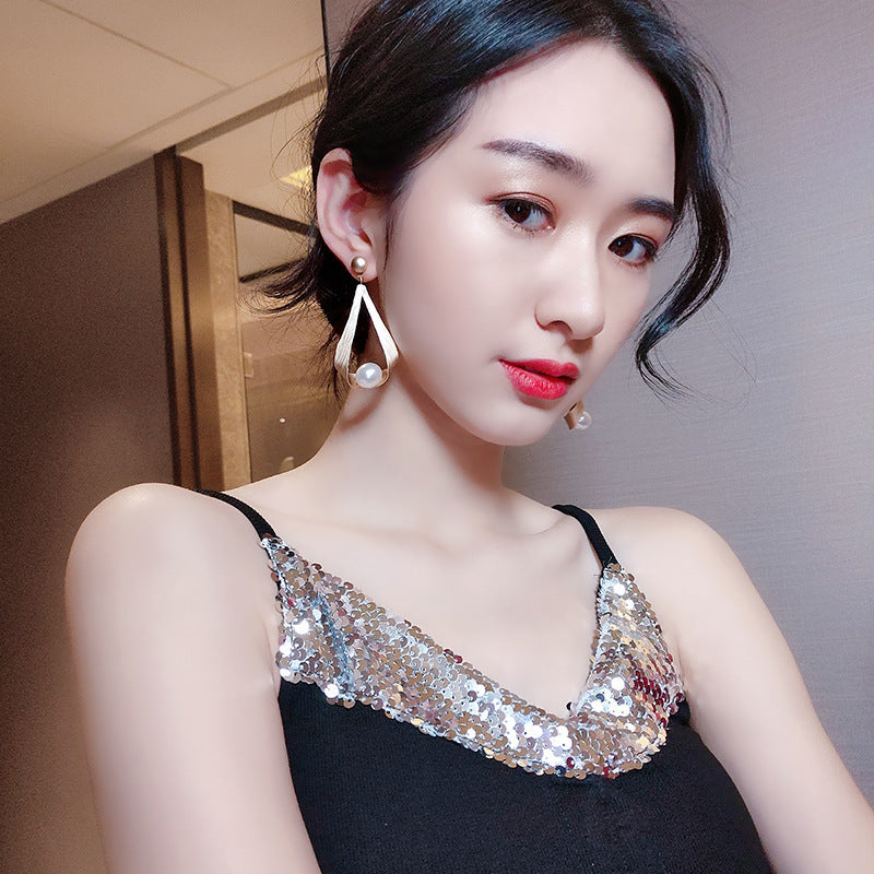 New Simple Pearl Personalized And Temperamental Long Style Eardrops