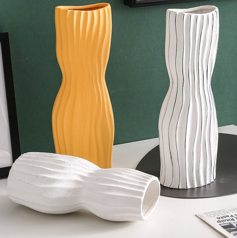 Nordic Creative Hand-painted Vase Ceramic Black And White Vertical Pattern Flower