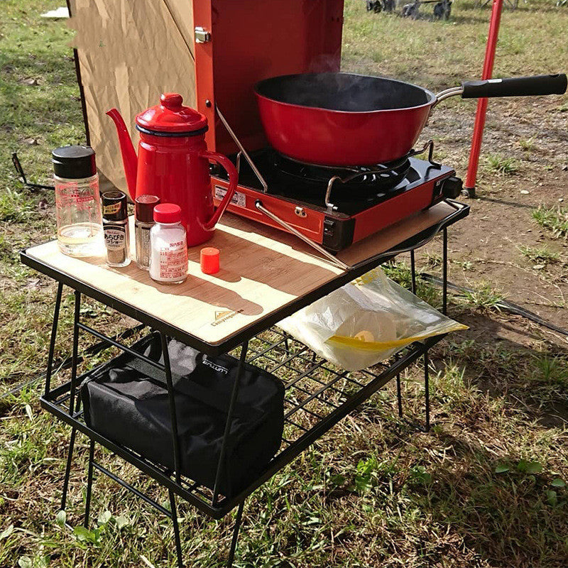 Outdoor Simple Folding Picnic Table Multi-layer Wrought Iron Rack