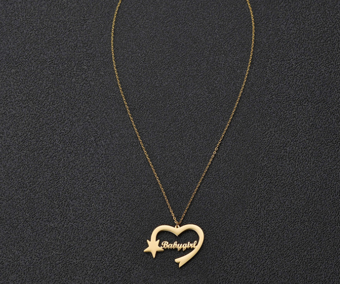 Personalized Cut Love Heart Shaped English Name Five-pointed Star