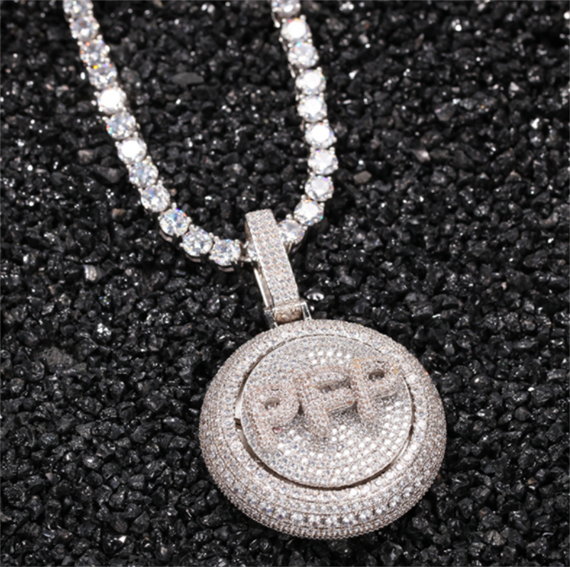 Personalized Hip Hop Custom Rotating Pendant 26 Letter Name Micro Inlaid Zircon