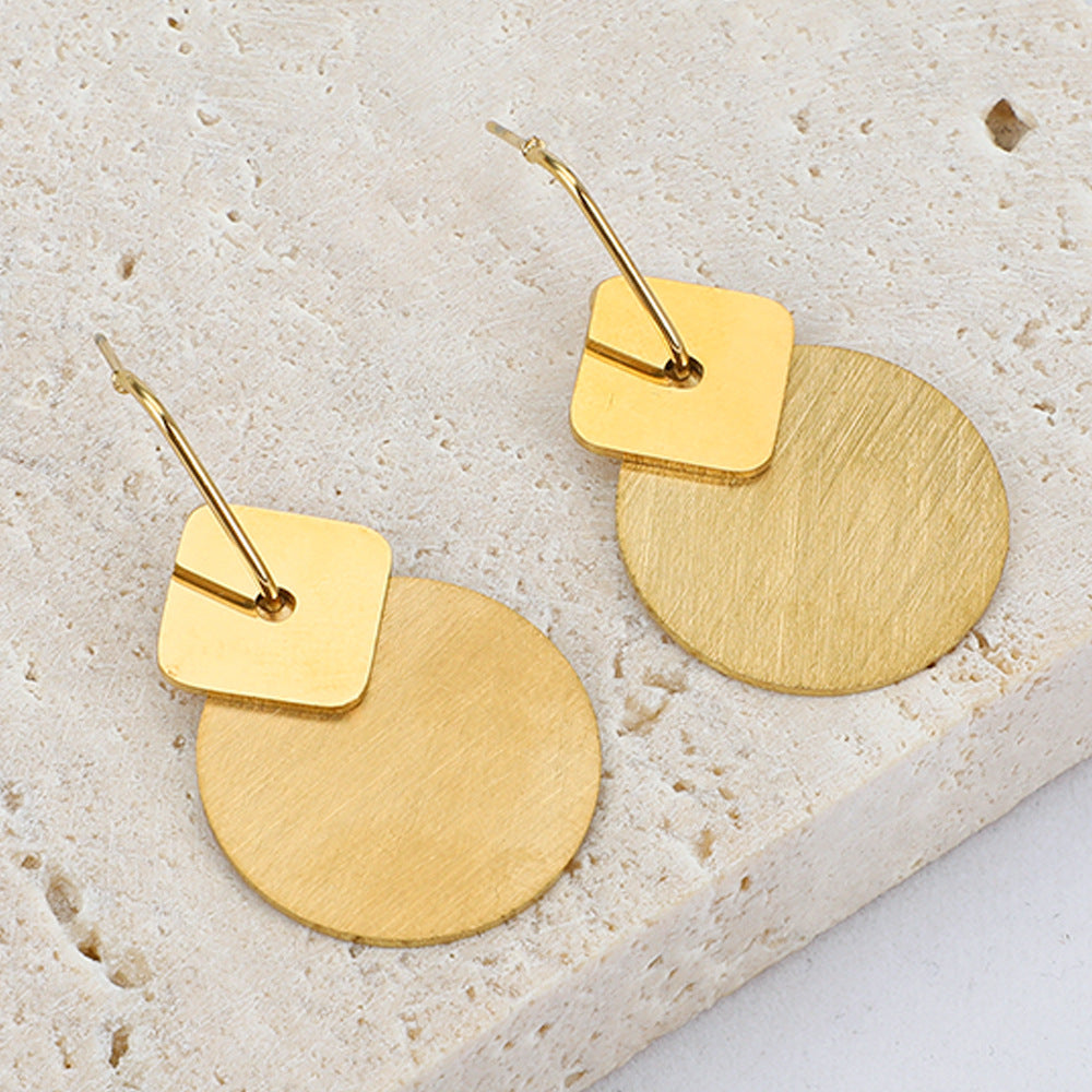 Personalized Long Net Red Earrings Round Brushed Flat Earrings