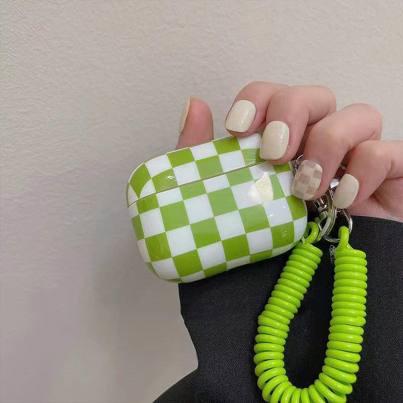 Plaid Phone Chain Wireless Bluetooth Headset Protective Cover
