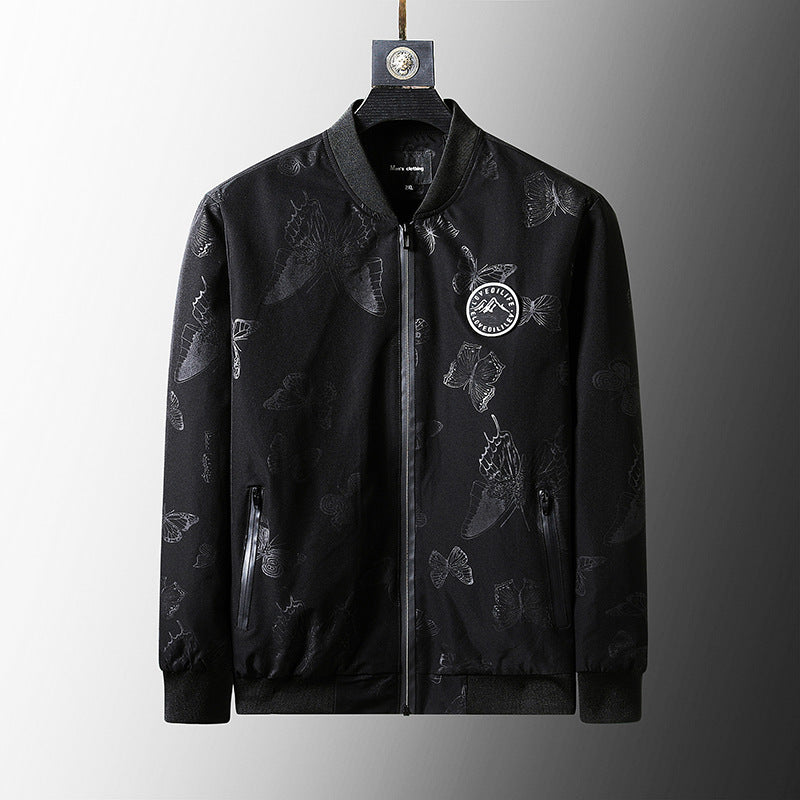 BLACK Plus Size Loose Clothes Men's Stand-up Collar Jacket