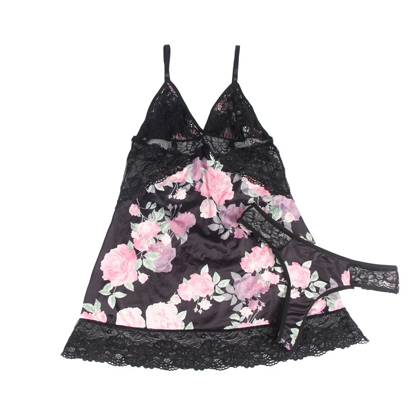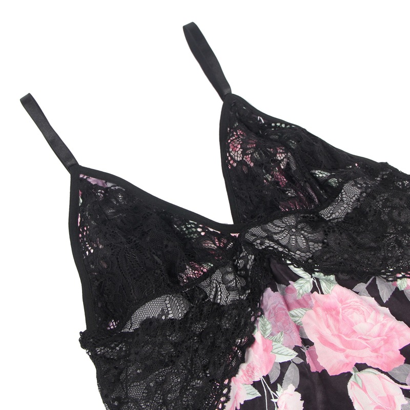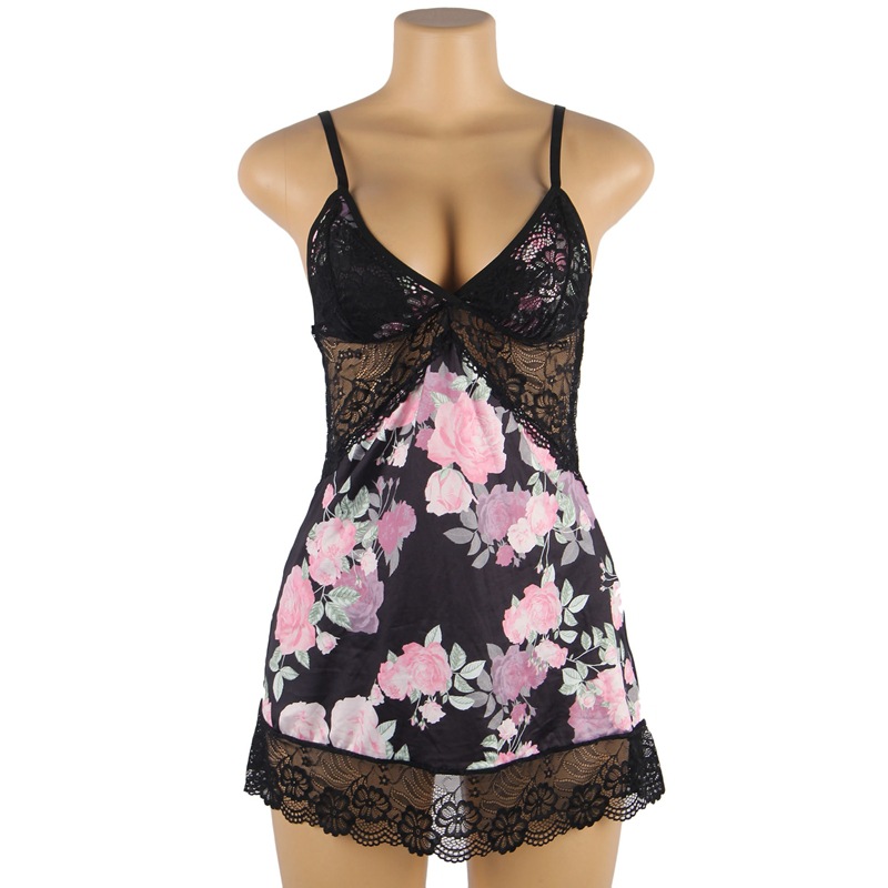 Plus Size Embroidery Patchwork Lace Sleeping Dress