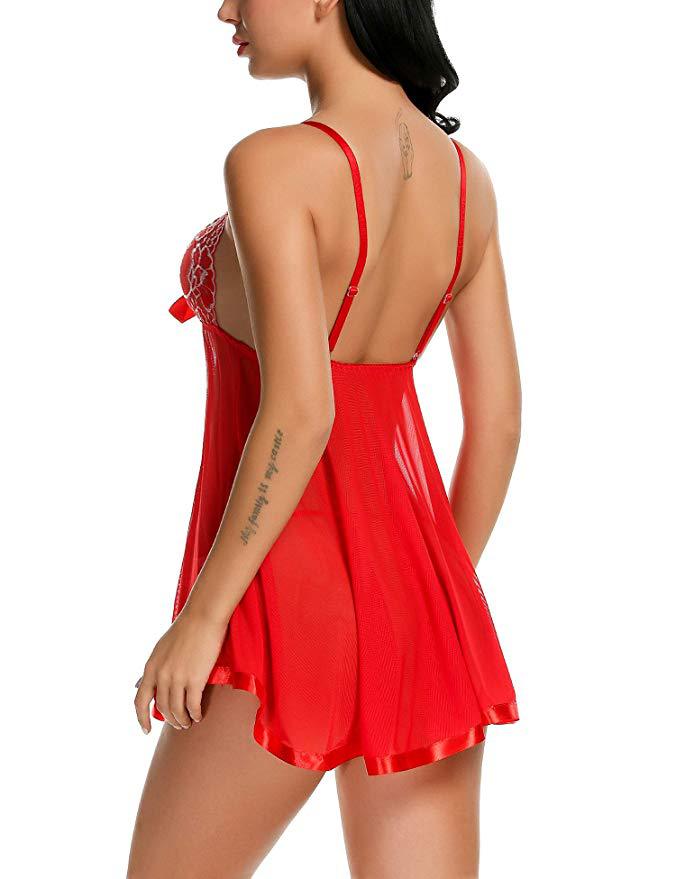 Plus Size Underwear Embroidered Sequins Transparent Suspender Nightdress
