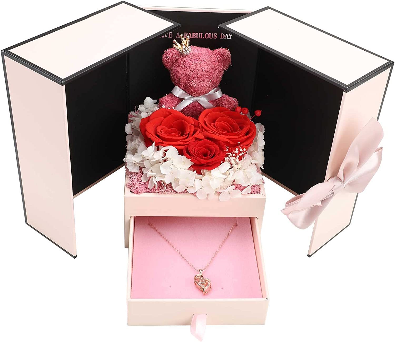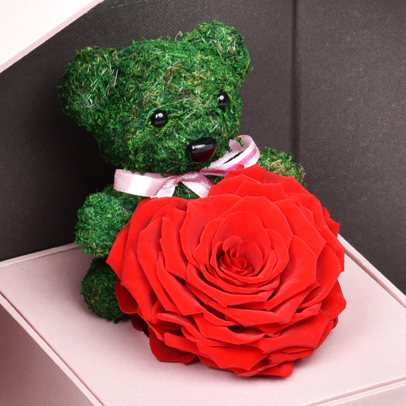 Color: Flower crisper jewelry box tower model, flower crisper hydrangea model, flower crisper jewelry box bear model, flower crisper single flower model, fresh flower jewelry box bear pattern 3 red flowers
