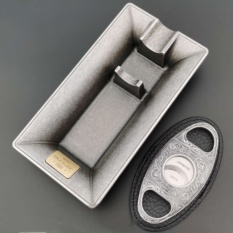 Ash tray*1, cigar cutter*1, portable leather case*1