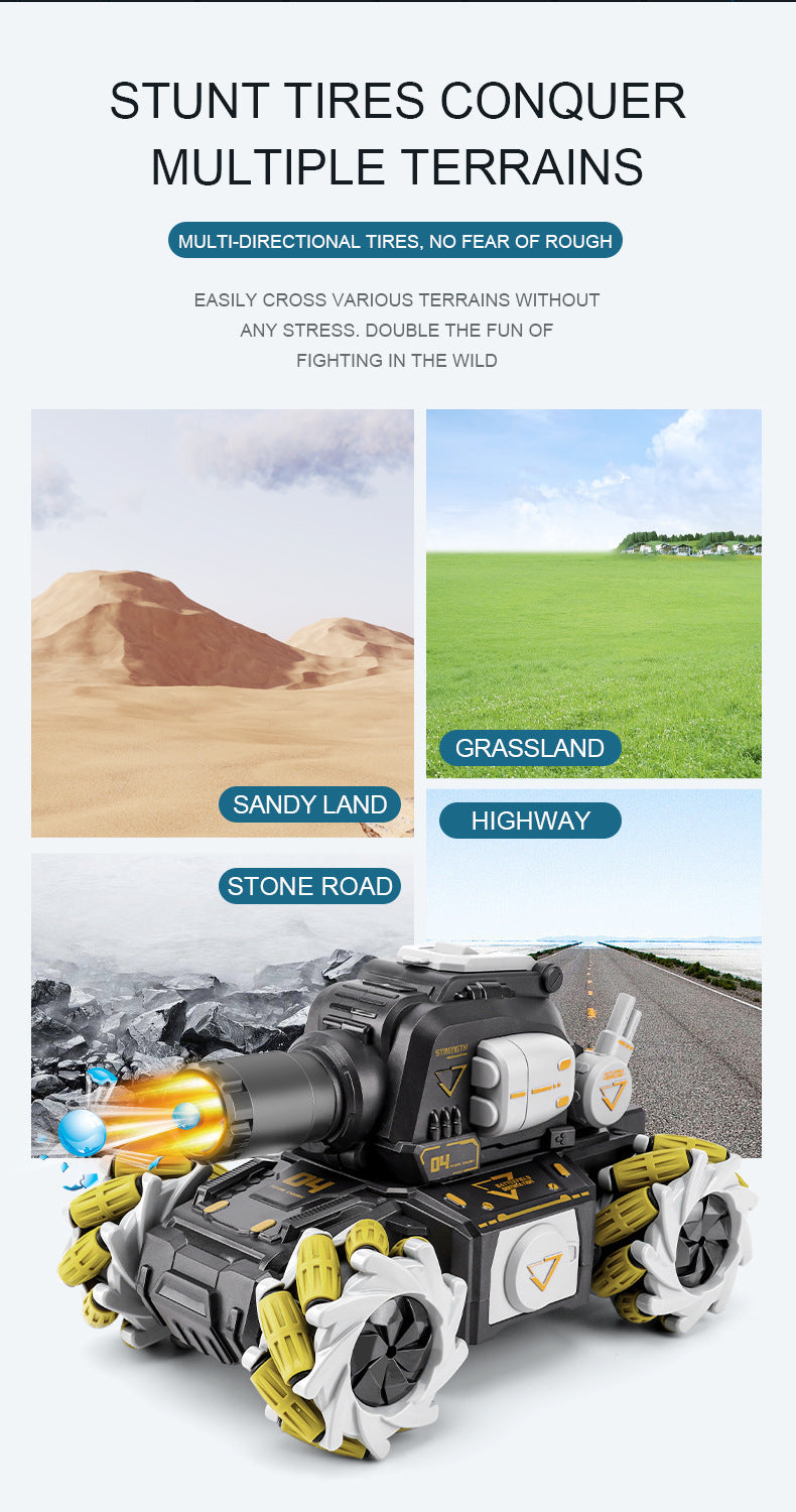 Remote Control Tank Fire-breathing Water Bomb Camouflage Chariot Four-wheel Drive Stunt Spray Music Toy Car