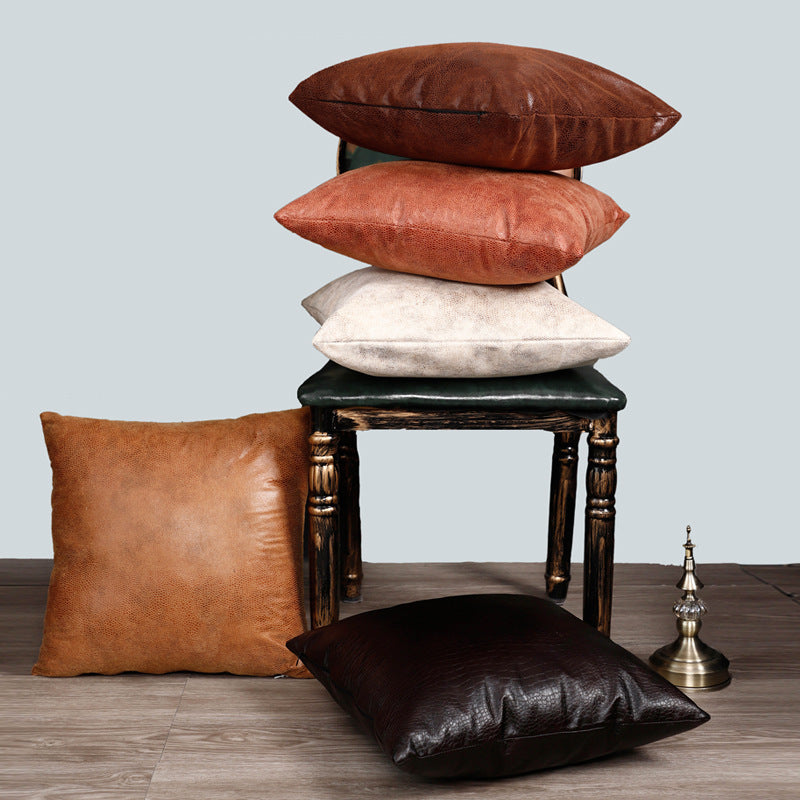 Retro Leather Sofa Pillowcase Cover With Gilded Backrest Cushion