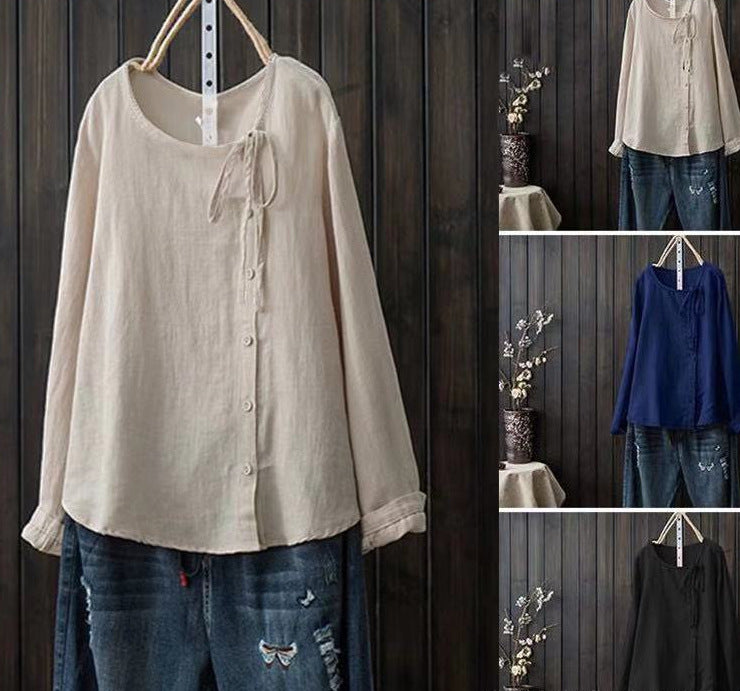 Retro Literary Long Ladies Plus Size Shirt
