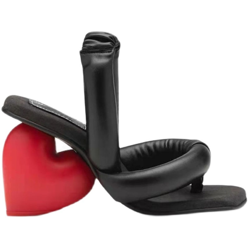 Retro Red And Black Color Matching Open-toed High-heeled Slippers