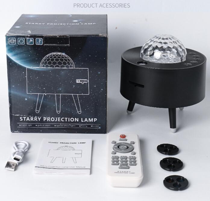 Function: special effect light + LED ocean projection (14 light modes) + starry sky projection (9 patterns) + built-in 3 white noises + Bluetooth + music rhythm + 3 speed rotation + timing + remote control