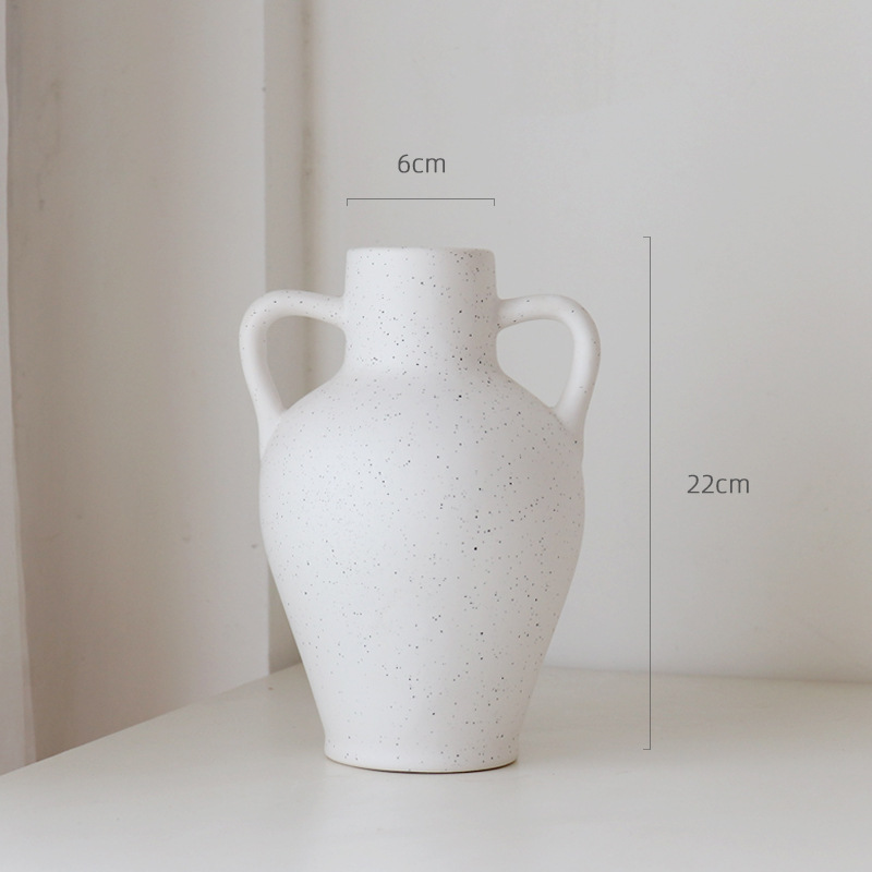 Round Belly Vase Double Ear Ceramic Table Top Decoration