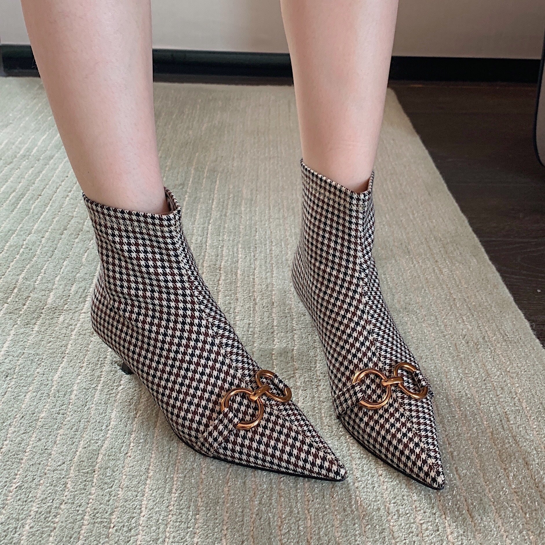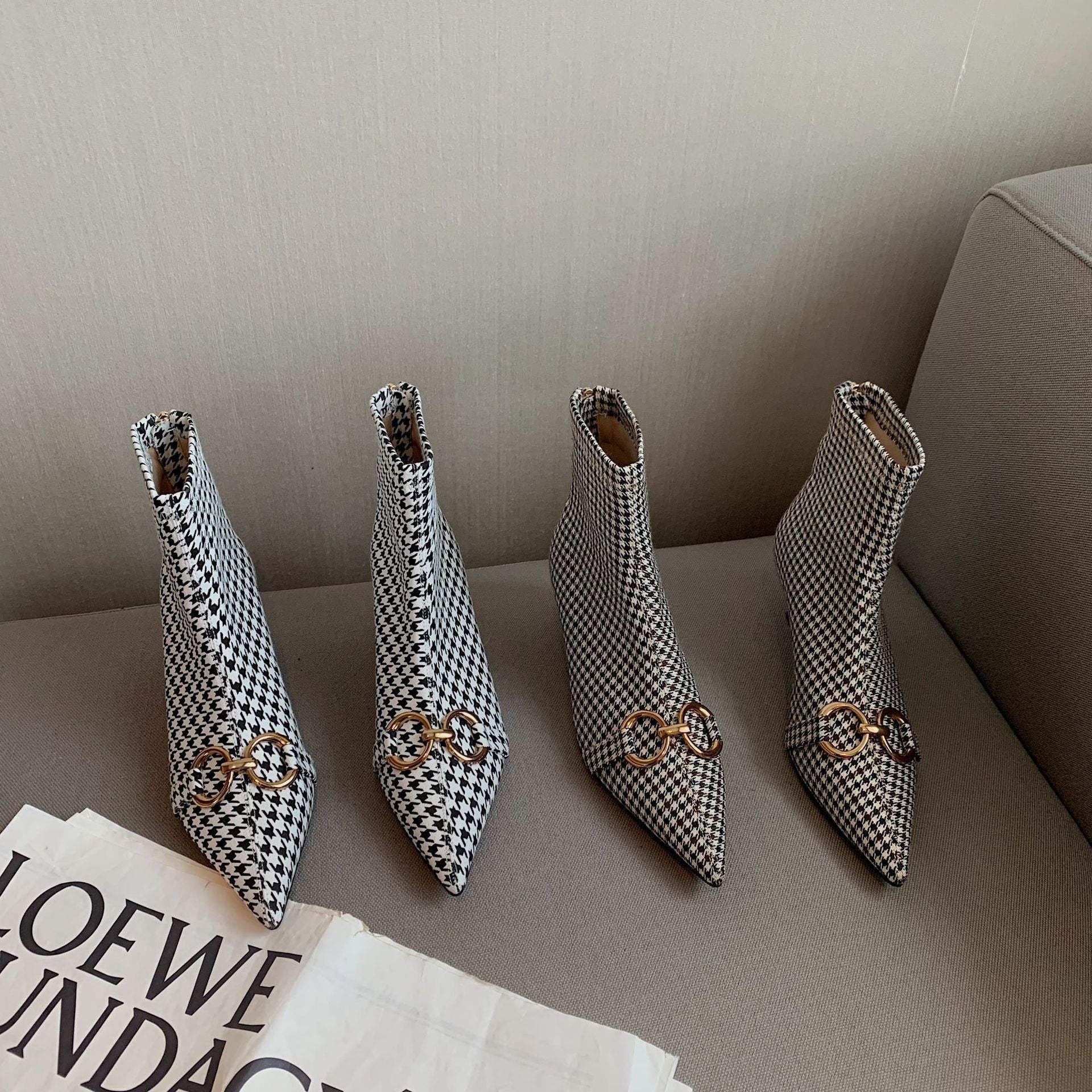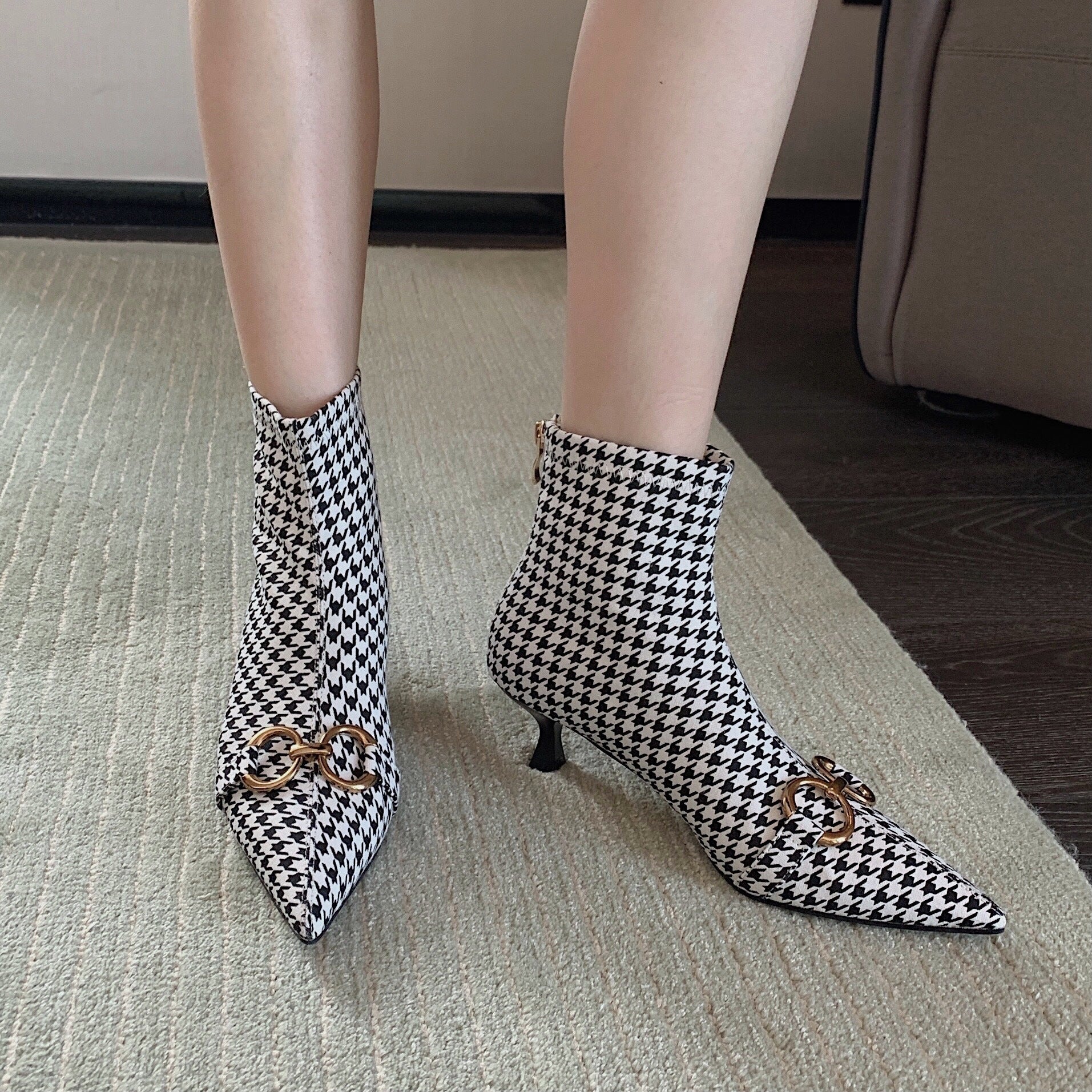 Side Zipper Small Heel Houndstooth Fashion Boots