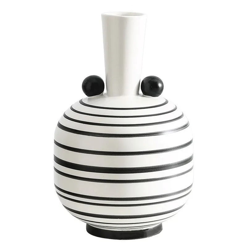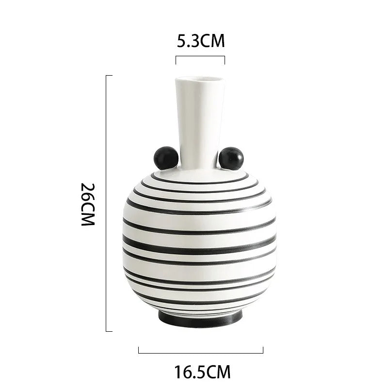 Simple Ceramic Vase Creative Hand-painted Black And White Striped Ornaments