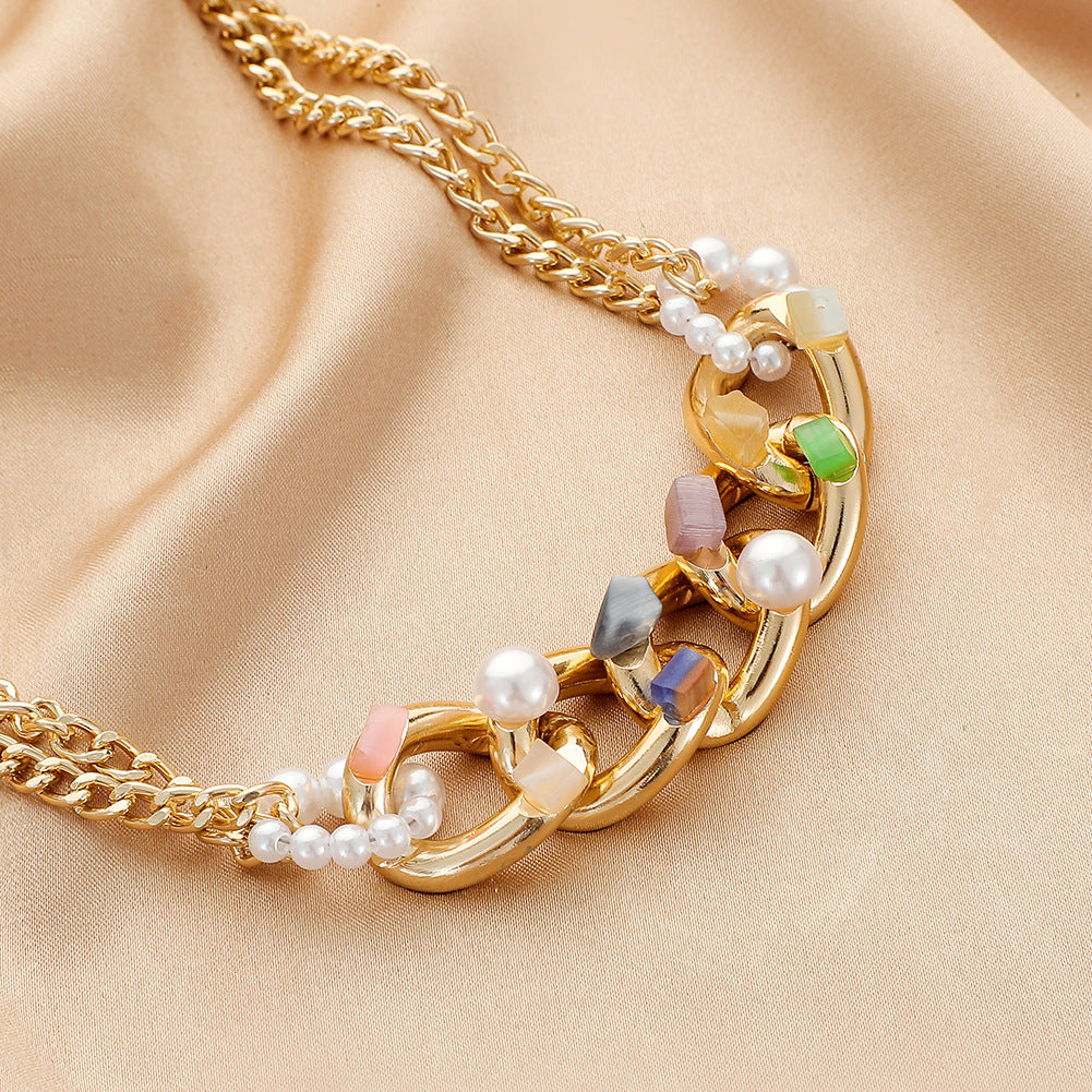 Simple Crushed Stone Aluminum Chain Pearl Pendant