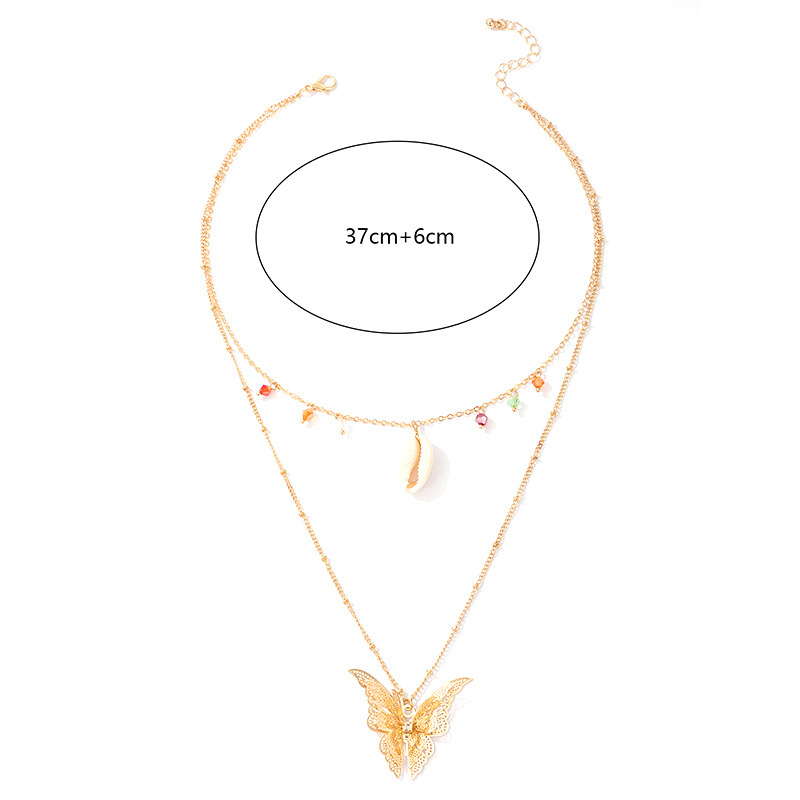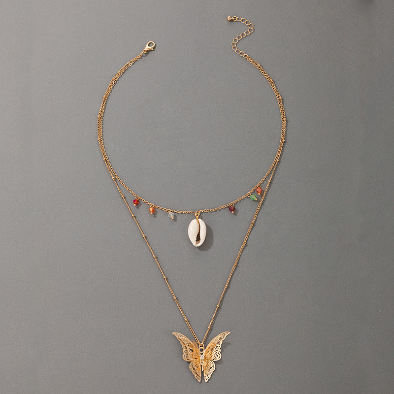 Simple Retro Ethnic Butterfly Shell Color Beads 2 Layer Necklace