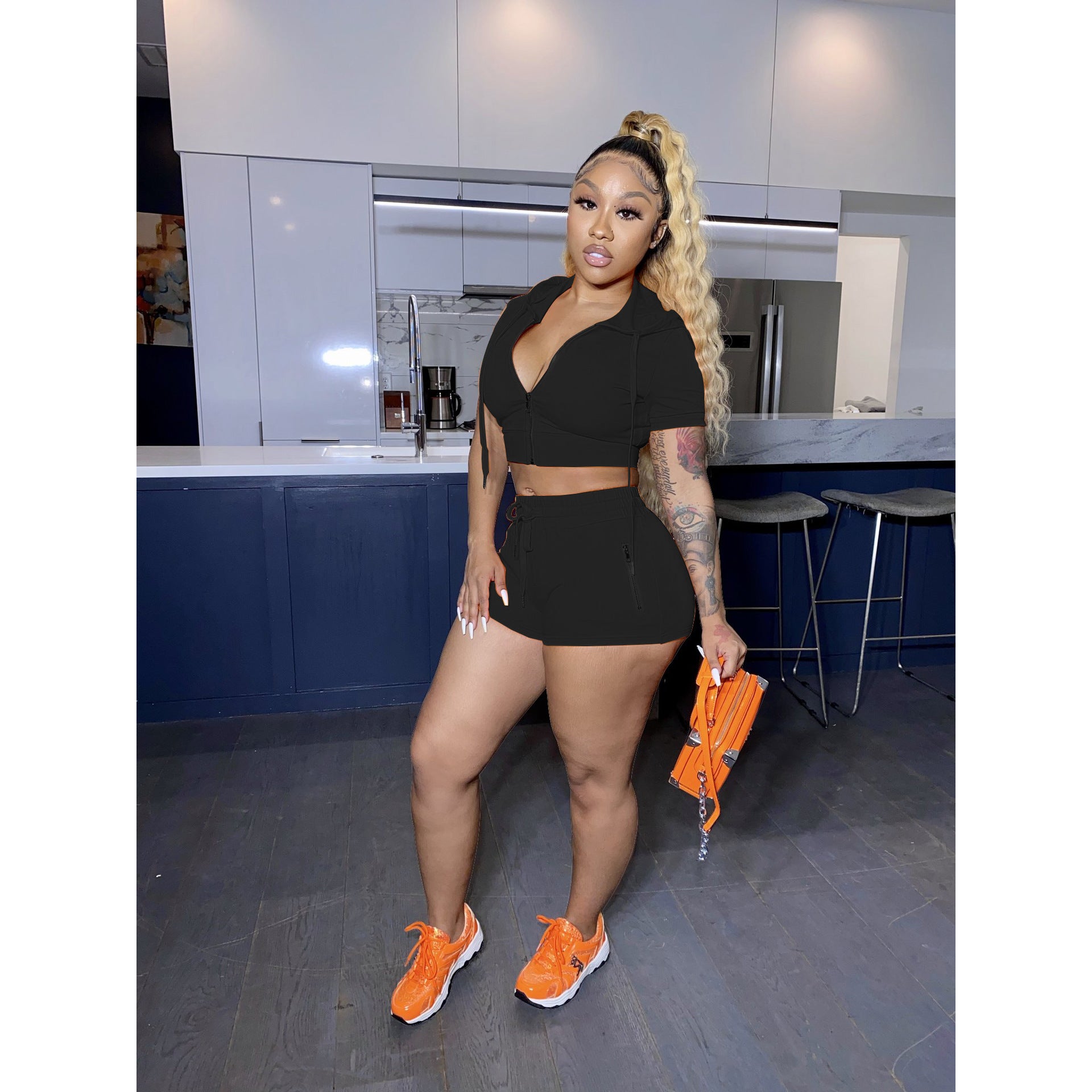 Spring And Summer Hooded Zipper Short-sleeved Shorts Sports Two-piece Suit
