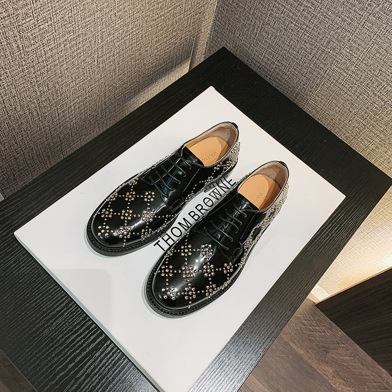 RED Leather Rivets British Style AUTHENTIC Small Leather Shoes FOR Women