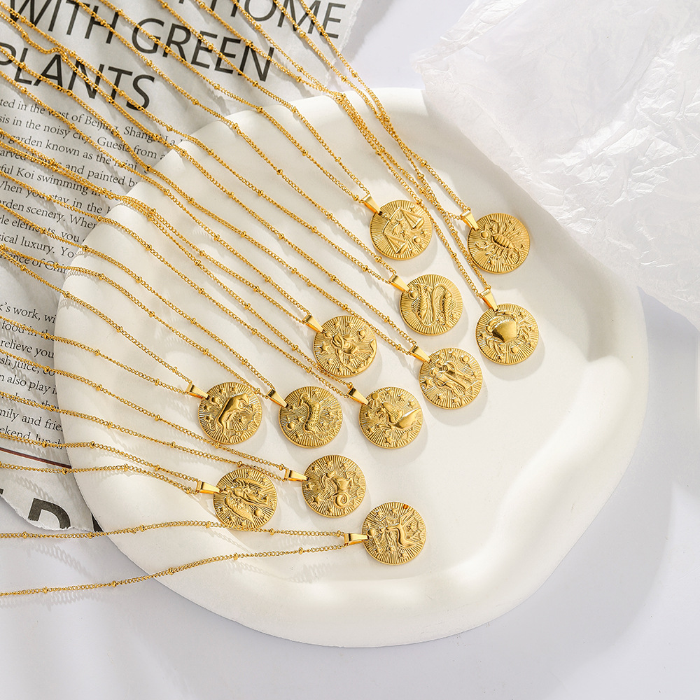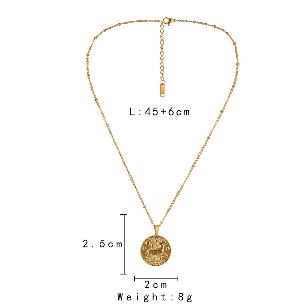 Stainless Steel Round Twelve Constellation Coin Relief Necklace