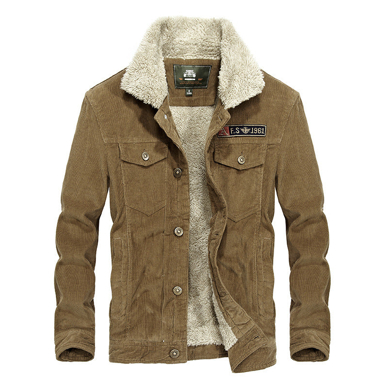 Stand collar corduroy men's loose large size jacket plus velvet thick coat