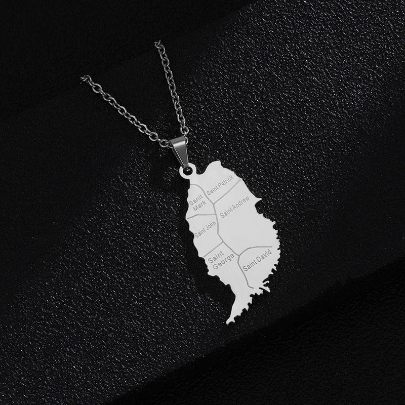 Stylish And Personalized Titanium Steel Smooth Golden Grenada Map
