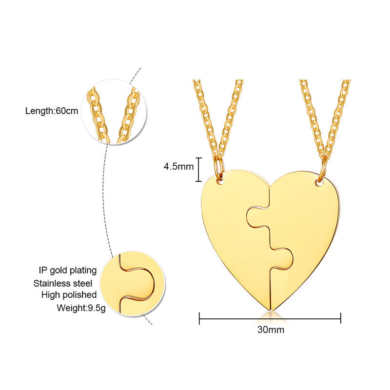 Titanium Steel Heart-Shaped Friendship Pendant Two-Piece Jewelry