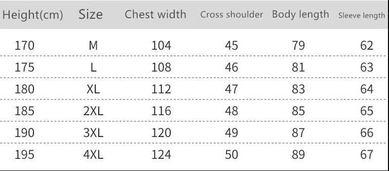 Size: 170/M, 175/L, 180/XL, 185/2XL, 190/3XL, 195/4XL