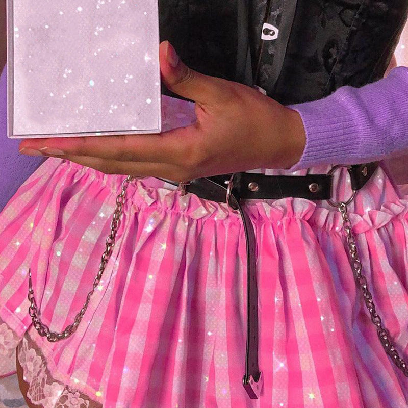 Women S Sexy High Waist Plaid Lace Pleated Skirt Skirt