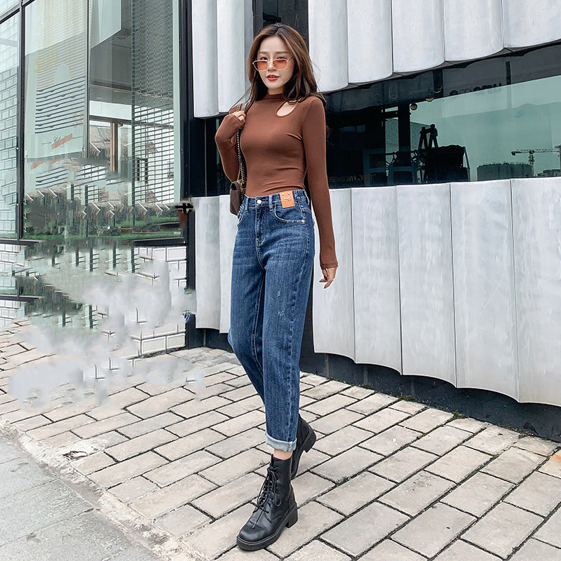 Women's Slim Blue Grey Plus Size Loose Jeans